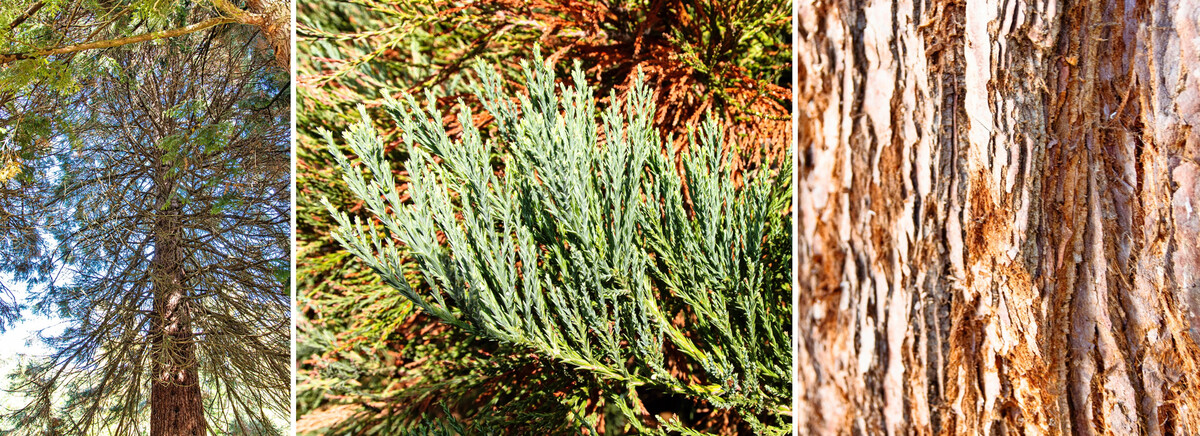 1Weitere typische Vertreter der Pyrophyten sind Mammutbäume, von denen verschiedene Gattungen auf dem Campus der HHU wachsen – unter anderem zwischen der ULB und dem 25er-Gebäudekomplex. Drei unterschiedliche Gattungen gibt es im Botanischen Garten: den Bergmammutbaum (Sequoiadendron giganteum) am Nordeingang, den Küstenmammutbaum (Sequoia sempervirens) auf den „Konifereninseln“ und den aus Asien stammenden Urweltmammutbaum (Metasequoia glyptostroboides) in der Asienabteilung. Die ersten beiden Bäume schützen durch eine dicke Borke die empfindlichen Teile des Stamms vor schnellen Grundfeuern. Die älteren Bäume sind unten am Stamm praktisch astfrei, so sind die Äste in größeren Höhen vor Grundfeuern geschützt.