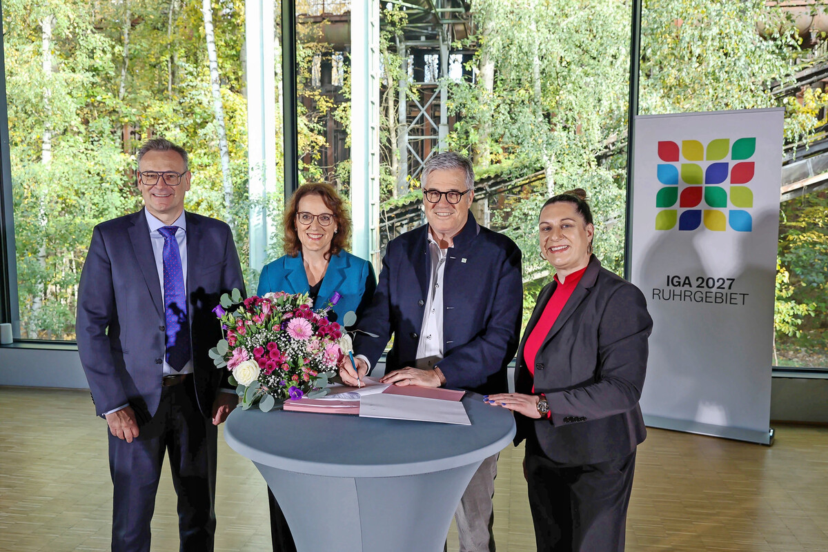 von IGA2027 erschienen am 06.11.2025Mit den Unterschriften der Vorsitzenden der SIG-Geschäftsführung, Ursula Mehrfeld, und dem Sprecher der IGA-Geschäftsführung, Hanspeter Faas, wurde dies heute im Salzlager der Kokerei vertraglich besiegelt.
