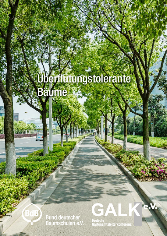 Der Bund deutscher Baumschulen (BdB) e.V. und die Deutsche Gartenamtsleiterkonferenz (GALK) e. V. und haben gemeinsam eine Broschüre mit dem Titel „Überflutungstolerante Bäume“ erarbeitet, in der ausgewählte Baumarten vorgestellt werden, die sich durch eine besondere Toleranz gegenüber zeitweiliger Überflutung auszeichnen.