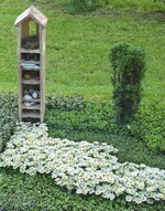 Grabbepflanzung: Für die klassische große Margerite ist nur auf großen Gräbern Platz. Die kleinen Strauchmargeriten passen auch auf kleinere Gräber, allerdings muss man dort im Laufe des Sommers den Zuwachs durch Schnitt begrenzen. Dem Rückschnitt folgen einige Wochen ohne Blüten. Ein Ausputzen einzelner Blüten ist kaum notwendig, weil alte Blumen recht schnell überwachsen werden. Neben den einfach blühenden Sorten sind mittlerweile auch gut gefüllt blühende Varianten im Angebot. Häufig sind die kleinen Margeriten in gemischten Beeten zu sehen, wo sie mit ihren rein weißen Blütenblättern und dem oft silbrig grauen Laub als neutraler Bestandteil für optische Ruhe sorgen. Vorsicht ist bei sehr kompakter Ware in sehr kleinen Töpfen angeraten – oft werden die Minis mithilfe von Hemmstoffen auf Format gebracht. Die Überlebenschancen solcher Gewächse auf dem Grab sind meist gering.