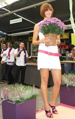 Rosa, lila, Pink – vor dem weißen Kleid Maria Beckmanns scheinen diese Farben noch kräftiger zu leuchten. Zehn besondere Pflanzen trug Würzburgs Star aus der letzten Staffel von Germanys next topmodell über den Laufsteg der Veitshöchheimer Gärtnerei Reim – und eröffnete damit die Aktionswoche des Bayerischen Gärtnereiverbandes (BGV) „Herbstlich Willkommen“.