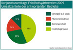 51 % des Umsatzes erwirtschaften die Betriebe mit der friedhofsgärtnerischen Dienstleistung. Im Durchschnitt werden 4,3 AK beschäftigt, ein Unternehmer kommt auf eine durchschnittliche Arbeitszeit pro Woche von rund 49 Stunden. Das Investitionsvolumen betrug durchschnittlich 7,7 % der Bilanzsumme. Im Vergleich zu 2008 konnten in den Blumengeschäften im Frühjahr und Sommer leicht verbesserte Umsätze erwirtschaftet werden, im Herbst tut sich die Branche weiterhin schwer.