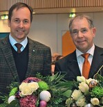 ist neuer Präsident des Landesverbands Gartenbau Westfalen-Lippe. Er tritt die Nachfolge von Heinz Herker (rechts im Bild) an, der 18 Jahre lang dem Landesverband Gartenbau Westfalen-Lippe vorstand und nun zum Ehrenpräsidenten des Verbands gewählt wurde.