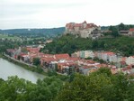 Stadt mit Anziehung: Blick aus Österreich über die Salzach auf die Altstadt und die "längste Burg Europas" | Bayerns Ministerpräsident Stoiber bei der Einweihung der Gartenschau |