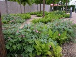 | Nebelwald im Stadtpark: Unter Catalpas wächst Straußfarn und Tränendes Herz | |