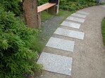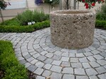 | Schöne Details: Plattenbelag.... | .....und ein Vorhang aus Kies |