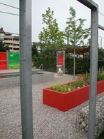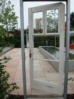 | Ein Raum aus Stahlelementen,.... | ....Naturstein und Kies |