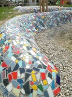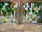 | Naturstein in Kombination mit buntem Plexiglas.... | .....und Spiegelscherben |