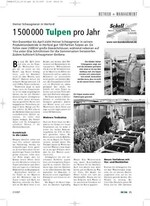 Von Dezember bis April zieht Heiner Schwagmeier in seinem Produktionsbetrieb in Herford gut 100 Partien Tulpen an. Sie füllen zwei 2 000 m2 große Gewächshäuser, während nebenan auf 1 ha unter Glas Schnittrosen für die Sommersaison heranreifen. Zudem kultiviert Schwagmeier Gerbera.