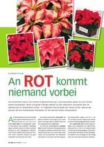 Als beste Neuheit für die kommende Saison gilt bei Beekenkamp die 7,5- Wochen-Sorte für 10,5- bis 21-cm Töpfe 'Astro Red' mit mittelgroßen, natürlich leuchtend roten Brakteen. Auffallend vielen Cyathien stehen in einem schönen Kontrast zu den dunkelgrünen Blättern. Gute V-Form, stabile Triebe sowie ein trotzdem leicht rundlicher Aufbau und gute Haltbarkeit kennzeichnen die Sorte. Die hellrot leuchtende 'Hera Red' mit glatten Brakteen überzeugt durch einen guten V-förmigen Wuchs, stabile Triebe und eine ausgezeichnete Haltbarkeit. Die sehr gut verzweigende 'Centauri Red' mit sehr schönem V-förmigem Wuchs und glatten Brakteen beeindruckt durch viele dicke Wurzeln. Das macht diese Sorte robust und unempfindlich. Die mittelstark wachsende...