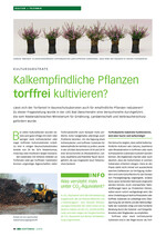 Bei vielen Kulturpflanzen wurden bereits sehr gute Erfolge mit mehr oder weniger stark torfreduzierten oder sogar torffreien Kultursubstraten erzielt. So sind in einigen Baumschulsubstraten Anteile von 20 bis 30 % Rindenhumus, Holzchips oder Holzfasern längst Standard. Bei Substraten mit höheren Anteilen an Torfersatz oder gar torffreien Substraten können ungünstige Eigenschaften vieler Torfersatzstoffe (zum Beispiel hohe pH- Werte, hohe Salzgehalte) allerdings auch Probleme bereiten. Um die Eignung stark torfreduzierter und torffreier Substrate für kalkempfindliche Gehölze zu prüfen, wurde in der LVG Bad Zwischenahn 2014 und 2015 eine Versuchsreihe an Rhododendron, Cal-luna, Gaultheria und Potentilla 'Nuuk' durch-geführt, die aus...