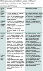 Wurzelfäule (Pythium) oder Wurzel- und Stammgrundfäule (Phytophthora) Plötzliches Welken der Blätter, meist ohne vorherige Vergilbung, ist ein Hinweis auf Befall. Die Wurzeln sind weichfaul. Bei Phytophthora-Befall fault zuerst der Stängelgrund und er verfärbt sich dabei braun bis schwarz. Später kann die Fäule das gesamte Wurzelsystem erfassen. Stauende Nässe fördert den Befall. Deshalb sollte bei trüber Witterung nicht zu viel gegossen werden. Pythium-Befall wird zudem durch niedrige Temperaturen und hohe Düngergaben begünstigt. Um Schäden durch Wurzel- und Stängelgrundfäulen vorzubeugen, sollten die Stellflächen desinfiziert und neue oder entseuchte Töpfe sowie krankheitsfreies Substrat verwendet werden. Dies gilt vor allem für Häuser,...