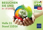 Der Bund deutscher Baumschulen (BdB) e.V. wird von Dienstag, 24. Januar, bis Freitag, 27. Januar 2017, mit eigenem Messestand (Halle 11, Stand 11 D 16) auf der IPM in Essen vertreten sein. Verbandsmitglieder und hauptamtliche Mitarbeiter der BdB-Bundesgeschäftsstelle freuen sich auf Ihren Besuch.
