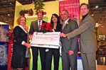 Die Poinsettien-Initiative „Stars for Europe“ und die Firma Scheurich haben mit der 2007 initiierten POS-Kampagne „Sternstunden für UNICEF“ einen ersten Meilenstein erreicht: Am 24. Januar 2008 wurde auf der IPM ein symbolischer Scheck mit einer Summe von 16 666 Euro an UNICEF, den Kinderfonds der Vereinten Nationen, übergeben. Diese Summe wurde im ersten Aktionsjahr durch den Verkauf von Weihnachtsstern-Topf-Arrangements erzielt. Darüber freuten sich (von links): Sabine Gesinn, UNICEF-Ortsgruppe Essen, Peter Baumann, Geschäftsführer Firma Scheurich, Fayette Scherwinski, Deutsche Blumenfee, Heinz Herker, ZVG-Präsident, Joachim Tomesch, Deutsches Komitee für UNICEF.