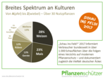 Die über 520 angemeldeten Landwirte stammen aus allen Regionen Deutschlands – vom Alpenvorland bis nach Ostfriesland. Spitzenreiter ist in diesem Jahr Niedersachsen mit 101 Feldern, gefolgt von Bayern mit 73 und Baden-Württemberg mit 66 Feldern. Die Teilnehmer vertreten dabei über 30 verschiedene Nutzpflanzen – von Hauptackerkulturen wie Weizen oder Mais, den Obst- und Gemüseanbau mit Kartoffeln, Zwiebeln oder Erdbeeren über den Weinbau bis hin zu Nischenkulturen wie Nutzhanf oder Kräutern. Erstmals haben sich in diesem Jahr auch Landwirte mit ihren Winterkulturen sowie ökologisch wirtschaftende Betriebe angemeldet.