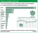 Die Ausgaben für Schnittblumen stiegen seit Langem erstmals wieder mengenbedingt an. Nach den auf Platz 1 führenden Rosen eroberten die Tulpen 2016 den zweiten Platz.