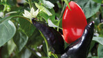 Eine umwerfende schwarz-rote Fruchtfarbe, das ist die neue Chili-Sorte 'Mamba-Red'. Diese innovative Chilisorte mit "Halloweenlook" des holländischen Züchters Prudac wächst aufrecht, mit starkem Leittrieb und vergleichsweise wenigen Seitentrieben (80 cm hoch, 30 cm breit). Die aufwärts gerichteten, glänzenden Schoten wechseln mit zunehmender Reife ihre Fruchtfarbe von trendigem Schwarz zu einem satten Rot. Der Geschmack der Früchte ist mild würzig. Nach der Ernte wächst 'Mamba-Red' dennoch weiter. Die Sorte ist simpel in der Kultur und muss nicht gestutzt werden. Als eine sehr schnelle Kultur, kann diese Sorte bereits jung und damit früh vermarktet werden. Die Früchte bleiben auch beim Transport der Pflanze zuverlässig hängen.