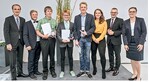 Aus Bayern kommen auch die Gewinner in der Wettbewerbsstufe B (Lernende im Abschlussjahr). Von links: Thomas Windmöller (Abteilungsleiter im Bundesministerium für Ernährung und Landwirtschaft), Florian Kaiser (AdJ-Bundesvorsitzender), Josef Aicher (Staudengärtnerei Gaißmayer, Illertissen), Moritz Ruppe (Blumen Egelhof, Dinkelsbühl), Georg Ell (Franz Ell Gartenbau, Nürnberg), Katharina Deilen (stellvertretende AdJ-Bundesvorsitzende), Jürgen Mertz (Präsident des Zentralverbands Gartenbau ZVG) und Caroline Pantke (AdJ-Bildungsreferentin). Bild: Bild: ZVG/Rafalzyk