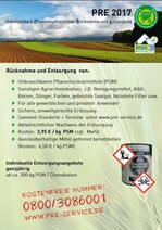 Auf der Webseite www.pre-service.de sind alle Informationen zum PRE-System, die Sammelstellen und Termine 2017 sowie die Annahmebedingungen zu finden. Unter der kostenlosen Servicenummer 0800 3086001 stehen Experten der Firma RIGK GmbH, Wiesbaden, die mit der Durchführung des Projekts betraut ist, für Fragen rund um Rücknahme und Entsorgung von unbrauchbaren Pflanzenschutzmitteln zur Verfügung (Mo - Fr., 9 - 17 Uhr, außer an Feiertagen).