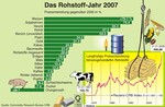 Nachdem in den Vorjahren insbesondere Industriemetalle im Preis stiegen, verteuerten sich im letzten Jahr vor allem einige Nahrungsmittel wie Weizen und Sojabohnen sowie Energierohstoffe. Da zahlreiche nachwachsende Rohstoffe auch zur Produktion alternativer Treibstoffe verwendet werden können, konkurriert hier die Nachfrage um begrenzt verfügbare Anbauflächen. globus
