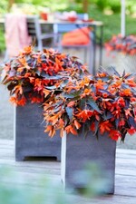 Das jüngste Mitglied der erfolgreichen "Bossa Nova"-Serie zeigt eine Vielzahl von kaskadenartigen, hellorangenen Blüten, die sich deutlich von den dunkleren Blättern abheben. "Bossa Nova" ist eine interspezifische samenvermehrte Serie des Boliviensis-Typs mit der Wuchsform einer Stecklings-Begonie. Ihre vieltriebige, basale Verzweigung sorgt für dichte, sehr robusten Pflanzen, die bis zum ersten Frost Ampel und Töpfe vollständig ausfüllt.