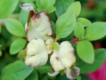 Hohe Tag-Nacht-Schwankungen der Temperatur sowie ausreichende Feuchtigkeit im Frühjahr fördern das Wachstum der Ohrläppchenkrankheit (Exobasidium japonicum). Zunächst sind vereinzelt Blätter, beginnend an den Triebspitzen, fleischig verdickt. Die Schadstellen verfärben sich hellgrün, rötlich und weiß. Im Sommer entwickeln sich Verwachsungen der gesamten Triebspitze, später bildet sich darauf ein weißer Sporenbelag. Beim Auftreten erster Symptome sollten die befallenen Pflanzenteile ausgebrochen werden.