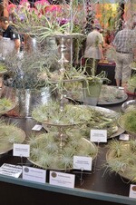 Die Außenbereiche der Hallenschau sind zurückhaltender gestaltet. Dort tanzen große Holzfiguren durch Tillandsien, Hibiscus und Hosta. Für eine überdurchschnittliche Vielfalt an Tillandsien erhielt die Gärtnerei Dötterer aus Freiberg am Neckar genauso eine Große Goldmedaille wie Hosta Garten Teltow aus Berlin für einen wunderschönen Einblick in das Hosta-Sortiment mit all ihren Formen, Farben und Größen. Die Wilhelm Klein Gärtnerei aus Kornwestheim darf sich über eine solche Auszeichnung für ihr hervorragendes Pflanzensortiment in einheitlicher reich blühender Qualität freuen.