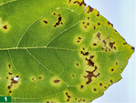 Helianthus Feuchtwarmes Wetter fördert das Auftreten von Sclerotinia -Stängelfäule in Schnittblumenbeständen. Am Stiel bildet sich ein watteartiges Myzel, das den gesamten Stängel umfasst, die Pflanzen welken und sterben ab. Im Innern des Stängels sind schwarze Körner, die Fruchtkörper des Pilzes, zu finden. Vorbeugend können Signum oder Ortiva eingesetzt werden. Bei Helianthus können bakterielle Blattfleckenerreger, ausgelöst durch Pseudomonas syringae , auftreten. Befallene Blätter zeigen schwarze, eckige Flecken meist im unteren Bereich, diese sind deutlich von den Blattadern begrenzt ( Bild 1 ). Die Flecken sind von einem hellen, später violett färbenden Hof umgeben. Bei Niederschlägen und hoher Luftfeuchtigkeit im Pflanzenbestand...