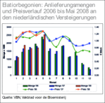 In den Monaten Februar und März, im Monat Juli und ab Oktober sanken die Preise sehr stark ab. Für das Angebot gab es keine entsprechende Nachfrage. Im Jahr 2007 und auch in den ersten Monaten dieses Jahres stabilisierte sich der Preis trotz eines leicht gestiegenen Angebots. Insgesamt ist die Nachfrage nach Begonien relativ stabil bei einem recht niedrigen Preisniveau. Spezialisierte Betriebe sind dann auch insgesamt etwas zufriedener als Saisonanbauer.