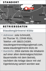 Die kleine Gärtnerei, das will Julia Schmoldt auch bleiben. Ich hätte gerade in der Coronazeit das Sortiment deutlich vergrößern und Gehölze und Rosen dazunehmen können aber ich will bei den Stauden bleiben." Einjährige, Beet- und Balkonpflanzen gibt es ohnehin bei einem Kollegen am Ort.