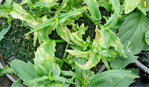 Nemesia Wachstumshemmungen, konzentrische Ringe auf Blättern, deformierte Austriebe sind Anzeichen für Infektionen mit Tospo-Viren (Impatiensnekrosefleckenvirus, Tomatenbronzefleckenvirus). Die Viren können mechanisch sowie durch Thripse übertragen werden ( Bild 1 ). Mit zunehmender Entwicklung der Thripspopulation im Frühjahr werden in der Regel auch die Schäden durch Tospo-Viren mehr. Die Gefahr der Verbreitung auf andere Kulturen ist dann groß. Eine direkte Bekämpfung ist nicht möglich, betroffene Pflanzen sollten sofort vernichtet werden. An Nemesia kann schnell Botrytis am Stängel auftreten. Die Luftfeuchtigkeit darf nicht zu hoch ansteigen, Pflanzen nicht zu tief getopft werden. Bei wenig Licht und niedrigen Temperaturen muss für...