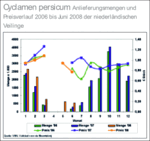 Zwar gab es im Jahr 2006 eine etwas größere Produktionsmenge, dies hatte aber gleich niedrigere Durchschnittspreise zur Folge. Der größte Teil der niederländischen Produktion wird in Italien, Frankreich und anderen Ländern abgesetzt. Deutschland spielt, laut „Vakblad voor de Bloemisterij“, eine geringere Rolle, weil hier die Eigenproduktion relativ hoch ist. Die Qualität der deutschen Cyclamen wird von niederländischen Händlern außerdem als durchweg sehr gut beurteilt.