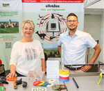 Einige Eindrücke von der IPM Summer Edition 2022 geben die Bilder: Für die Aussteller war die Veranstaltung willkommene Gelegenheit, auf Produktneuheiten zu verweisen. Elke Müller und Falco Brand (KME-AGROMAX Endingen) zeigten ein biologisch abbaubares Bindeband ( Bild 1 ), Landgard das saisonal orientierte „Landlust”-Sortiment ( Bild 2 ), die Wasserpflanzen-Gärtnerei Baumann aus Kevelaer Mini-Pflanzen mit ökologischen Vorteilen ( Bild 3 ).