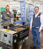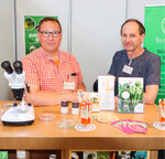 Matthias Rohde von Begonien-Rieger, Altdorf, hatte die unlängst eingeführten Euphorbia „Hot Milii” mitgebracht, die im Freiland mit Sonne und Trockenheit zurechtkommen und deshalb für die Grabbepflanzung eine interessante Alternative sind ( Bild 4 ). Apropos Gräber und Gießen: Diese Aufgabe kann auch der Bewässerungsroboter Rainos übernehmen, den Innok Robotics aus Regenstauf zeigte, links Jan Bley, rechts Stefan Obser ( Bild 8 ). Biologischen Pflanzenschutz zum Anschauen gab es am Stand von Katz Biotech, wo Martin Kamphusmann (links) und Dr. Peter Katz Rede und Antwort standen ( Bild 7 ). Und beim Verlag Eugen Ulmer erläuterte Redaktionsleiter Tjards Wendebourg, welche Fachmagazine Praktiker am besten unterstützen ( Bild 15 ). Fachinformationen gab es außerdem am Stand des KTBL von Christian Reinhold (links) und Till Belau ( Bild 12 ).