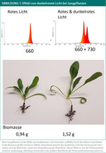 Die Lichtfarbe hat einen entscheidenden Einfluss auf das Pflanzenwachstum. Dunkelrotes Licht kann dieses fördern und hat weitere Effekte, zum Beispiel eine frühere Blüte.