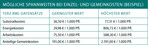 Auch bei in gleicher Höhe anfallenden Einzelkosten kann durch unterschiedliche Gemeinkosten-Ansätze der VP mehr oder weniger stark variieren. Bei einem Unterschied des Gemeinkosten-Ansatzes von 10,00 €/Bruttojahresquadratmeter (im Beispiel: 35,00 €/Bjqm gegenüber 45,00 €/Bjqm) resultiert ein Unterschied im VP von 16 Cent/Pflanze (im Beispiel: 1,16 €/Pflanze gegenüber 1,32 €/Pflanze) – siehe Abbildung Tabelle.
