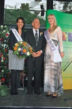 Feierlich erhielt sie aus Händen der scheidenden Amtsinhaberin Fayette Scherwinski (links), Dresden, die Schärpe „Deutsche Blumenfee 2008/2009“. Mit herzlichen Dankesworten seitens des ZVG-Präsidenten Herker und CMA-Vertreters Dr. Rainer Krämer bedacht, verabschiedete sich die Floristmeisterin nach zwei Jahren als Repräsentantin und wünschte ihrer Nachfolgerin viel Freude und Erfolg bei der Ausübung des Amts, das sie selbst als „sehr spannend und ereignisreich“ bezeichnete. Victoria Salomon vertritt als „Botschafterin der Gärtner und Floristen“ ab sofort bei zahlreichen öffentlichen Terminen die grüne Branche. ZVG