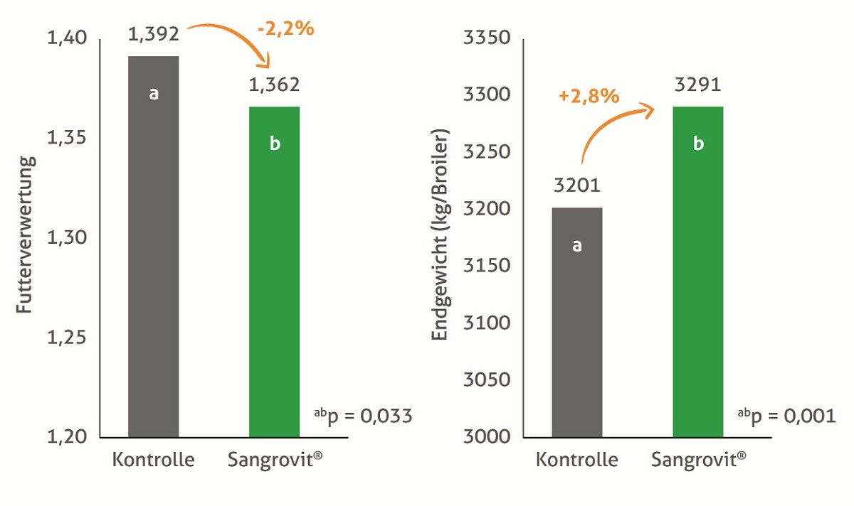 Pflanzliche Inhaltsstoffe können nachweislich helfen, übermäßige Entzündungsreaktionen zu modulieren und die Darmbarriere zu stabilisieren. Die Produktlinie Sangrovit® enthält standardisierte Mengen hochwirksamer Isochinolinalkaloide (IQ) und ist, durch kontinuierliche Weiterentwicklung, inzwischen in der 3. Generation mit einem optimierten, präzise abgestimmten IQ-Profil verfügbar. Mit Sangrovit® Extra 4d26 steht zudem ein zootechnischer Futterzusatzstoff für Mastgeflügel bereit, der über eine firmeneigene EU-Zulassung verfügt und dessen Wirksamkeit sowie Sicherheit umfassend geprüft wurden.