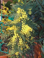 Grabgestaltung: Mimosen sind bei uns nicht winterhart, für die Dauerbepflanzung scheiden sie deshalb aus. Gelegentlich werden im Frühsommer blühende Kleinpflanzen oder Stämmchen angeboten, die in eine Schale oder in ein gemischtes Wechselbeet passen könnten – allerdings sind die Pflanzen oft recht kostspielig.