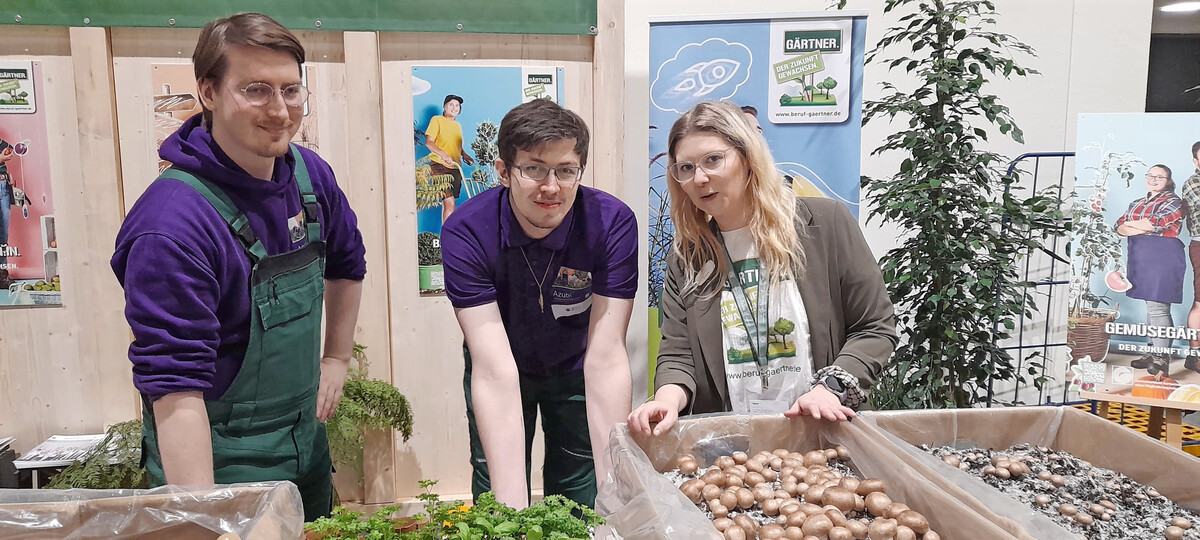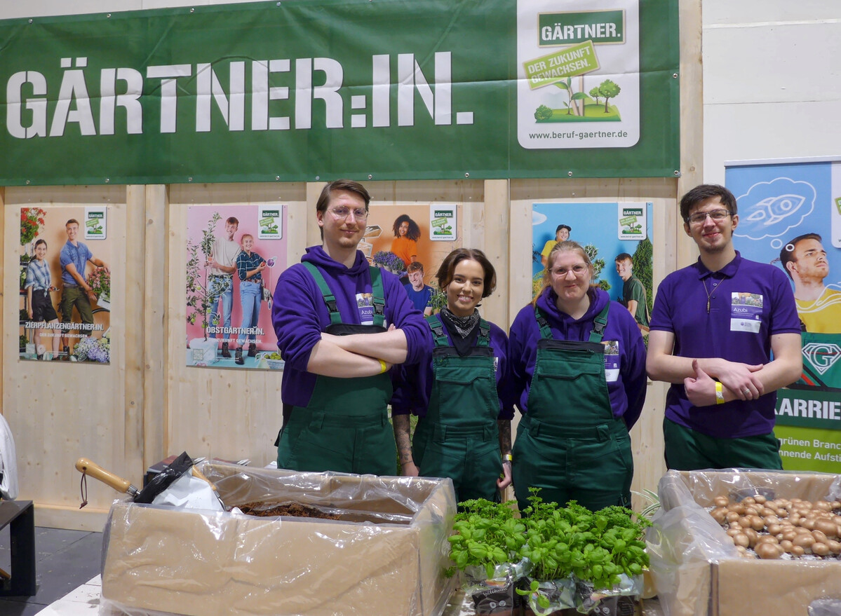 Am Messestand erhielten die Auszubildenden Unterstützung von Ida Anheier, Projektkoordinatorin für Nachwuchswerbung im ZVG. Sie betreut die Kampagne „Gärtner. Der Zukunft gewachsen.“ und war maßgeblich an der Gestaltung des ZVG-Messestands im „young generation hub“ der IGW 2025 beteiligt.